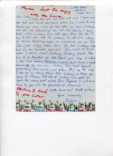 This collection provides a significant opportunity to represent political and personal freedom as a motivation for migrating to Australia within the international context of both apartheid in South Africa and the end of the White Australia policy in Australia. The personal narrative is well documented and the objects provide a material way to follow the lives of both Lindsay and Sylvia, both separately and where they coincide in South Africa and onwards together to Melbourne. While this is ultimately a love story, it plays out through the collection against the backdrop of apartheid South Africa, sixties London and an increasingly multicultural Australia.