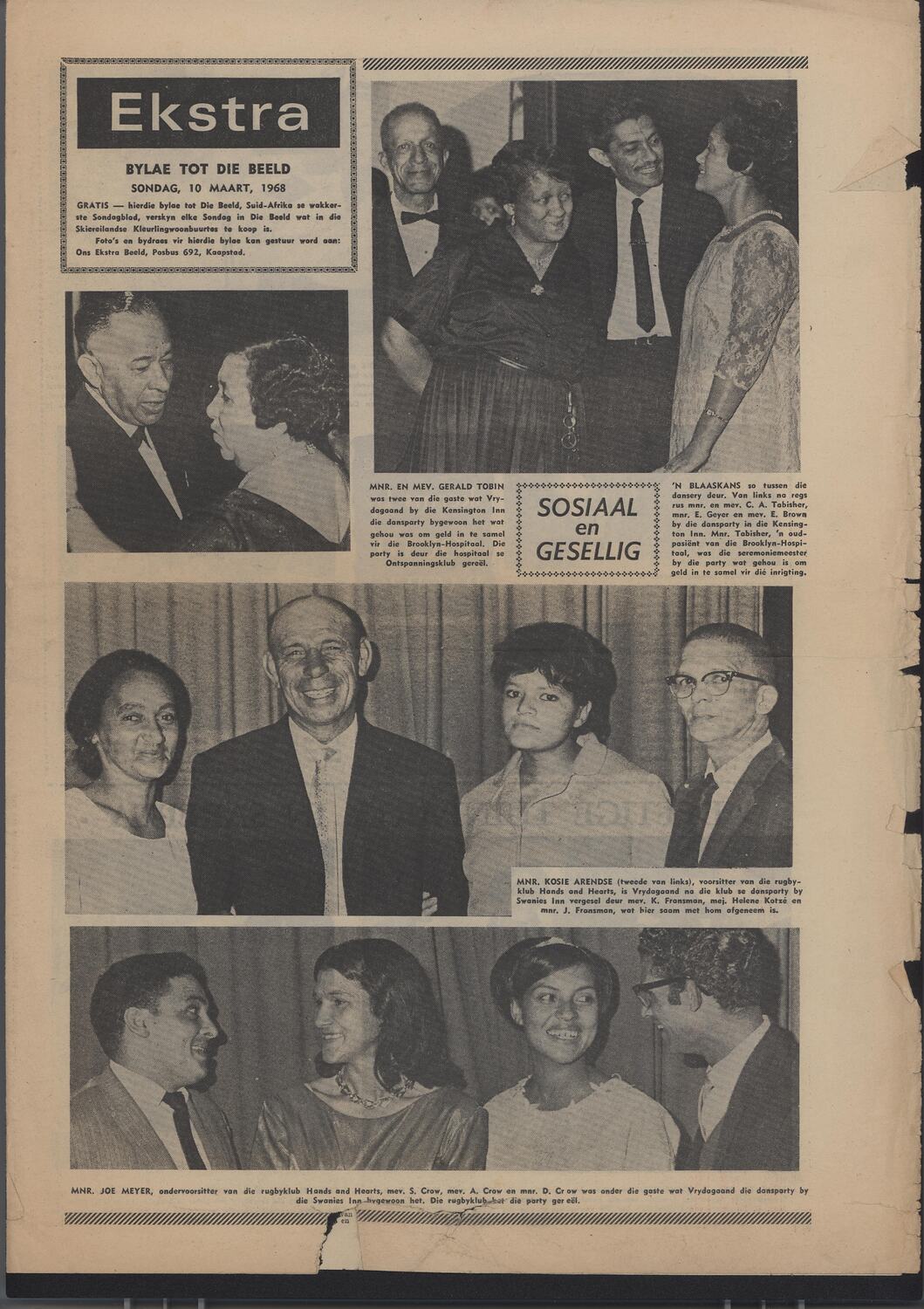 The 'Ekstra' magazine, pages 1-4, dated 10 Mar 1968. Page 1 contains photos of social events, page 2 shows behind the scenes photos of South Pacific and a garden party. Pages 3 and 4 are the sports section, with both articles and photos of sporting events.