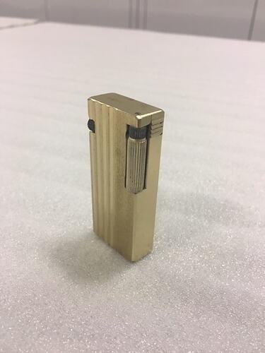 Cigarette lighter, gold Penguin brand which probably belonged to and was used by Lindsay Motherwell.