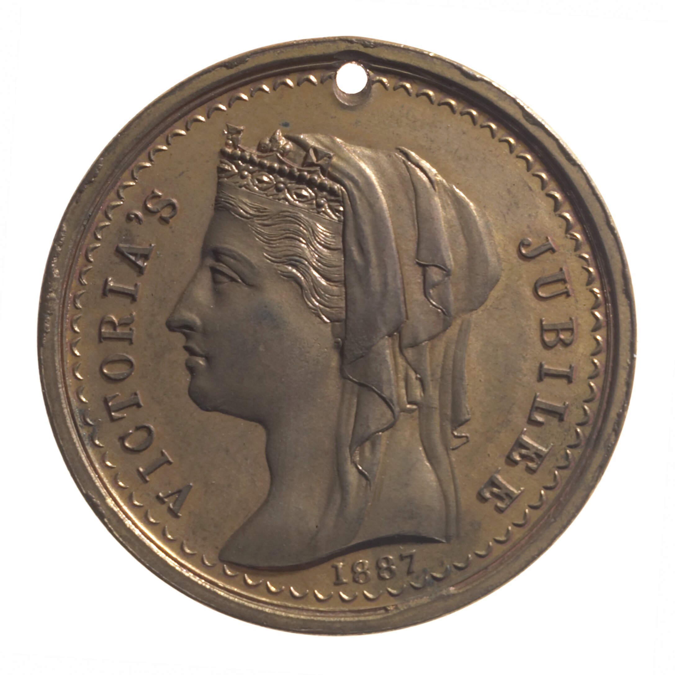 Head of Queen Victoria facing left, wearing veil and coronet; Around, VICTORIA'S JUBILEE Below, 1887