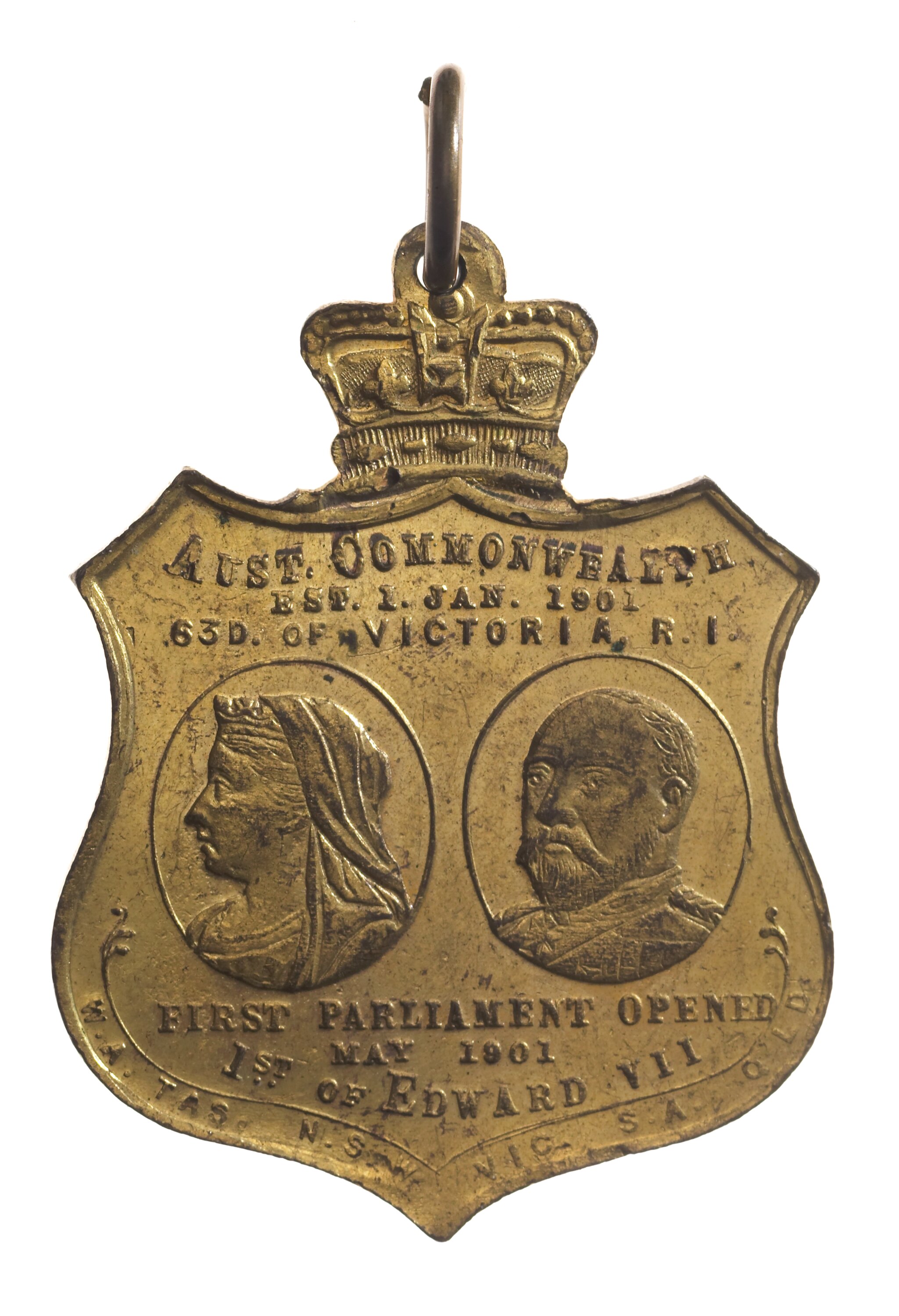 Other Details: Gilt bronze medal issued to school children to commemorate the opening of the first Australian parliament, held in Melbourne in 1901.