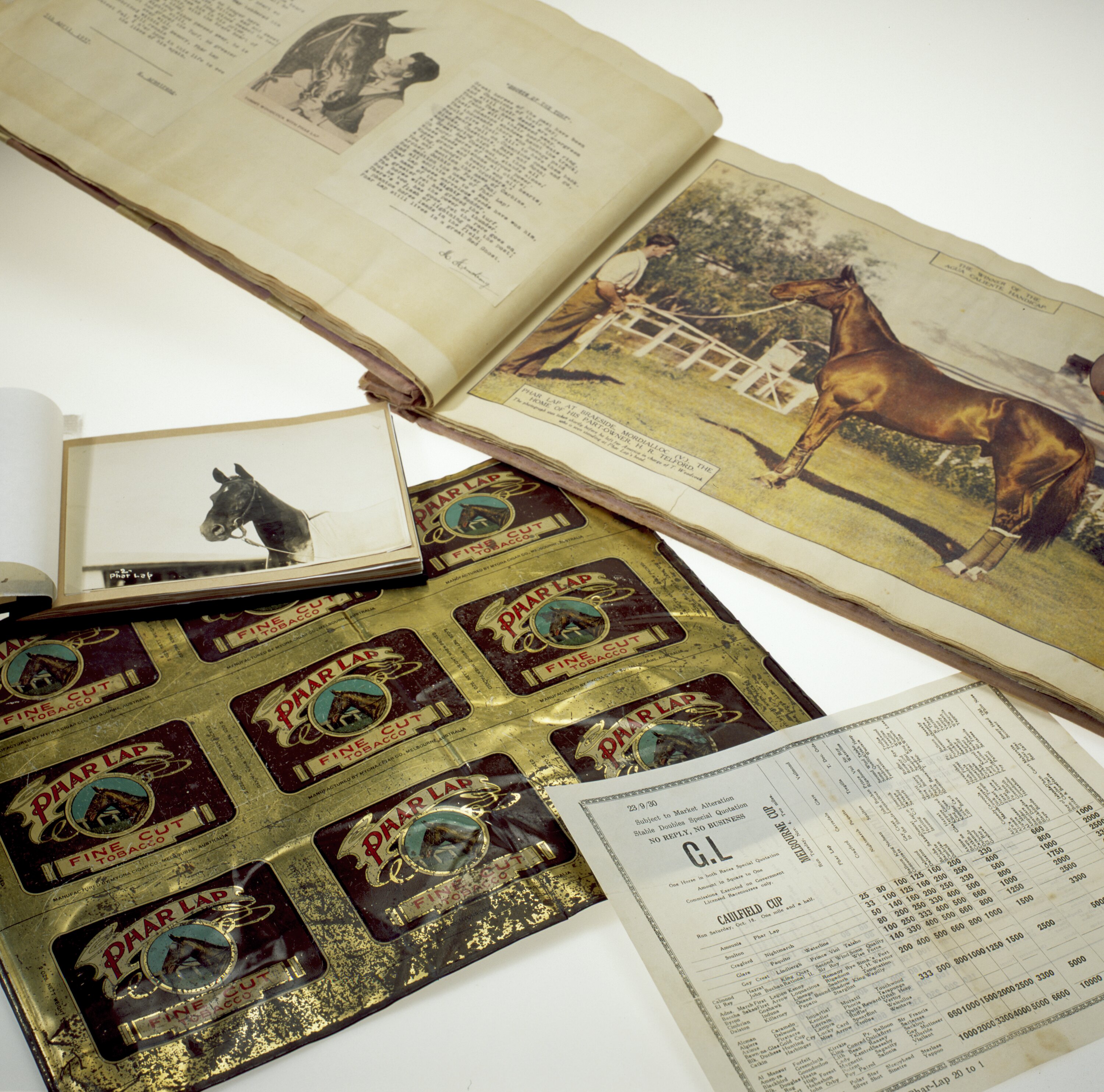 This scrapbook was compiled in Melbourne by a lifelong Phar Lap devotee, Marie Davie, and includes numerous newspaper and magazine clippings.