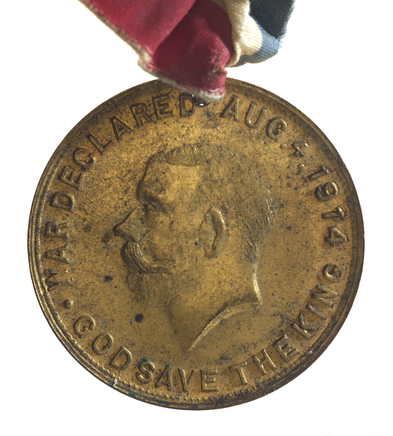 Head of George V bare, facing left; around, WAR DECLARED AUG. 4. 1914 . GOD SAVE THE KING