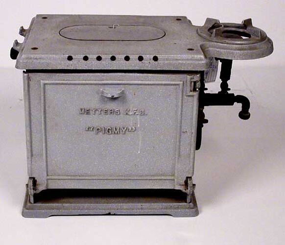 It was used in West Preston, Victoria by the donor's in-laws. The donor built his home in 1936 and set up an extra room for his in-laws who came to live with him. The Pygmy stove was purchased specifically for his in-laws; at the time it was considered suitable for their cooking needs. However the two couples decided to eat together and the stove was used only a few times. The in-laws lived with the donor until 1947 when they went to live in Ballarat; they undertook their journey in a horse-drawn caravan. When the donor's house was sold in 1993, the stove was passed on to the donor's agent who arranged its donation to Museum Victoria.