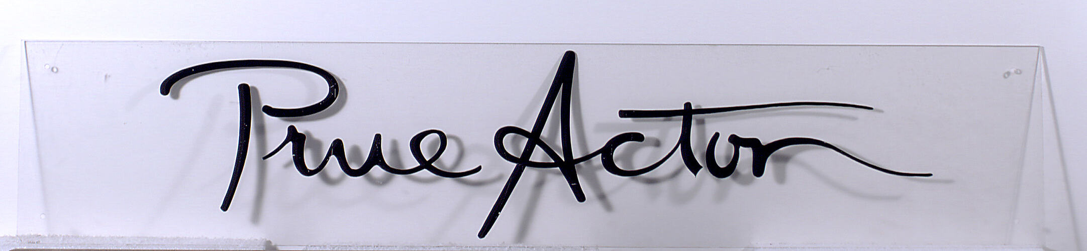 This Sign was used outside one of the Prue Acton boutiques in Melbourne in the 1980s. It mirrors the Prue Acton P/L clothing label design at the time, which was based on the donor's signature.