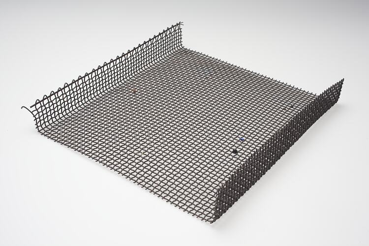 Wire Mesh used by artist Martha Ash circa 1996. Martha Ash was born in Poland in 1920 and lost all her family in the Holocaust. She came to Australia in 1949 where she studied ceramics, sculpture silver smithing, enamelling and glass mosaic. This piece of mesh was used to sit larger pieces requiring firing in the kiln. Martha Ash died in September 1996.