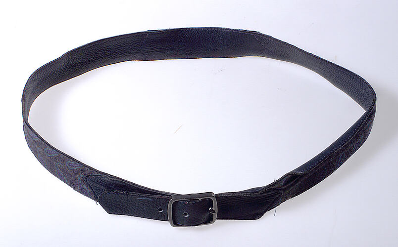 This belt was designed and manufactured in Melbourne by Prue Acton P/L circa 1986. The paisley range designed by Prue Acton and Merrill Clarke around fabrics purchased in Germany.
