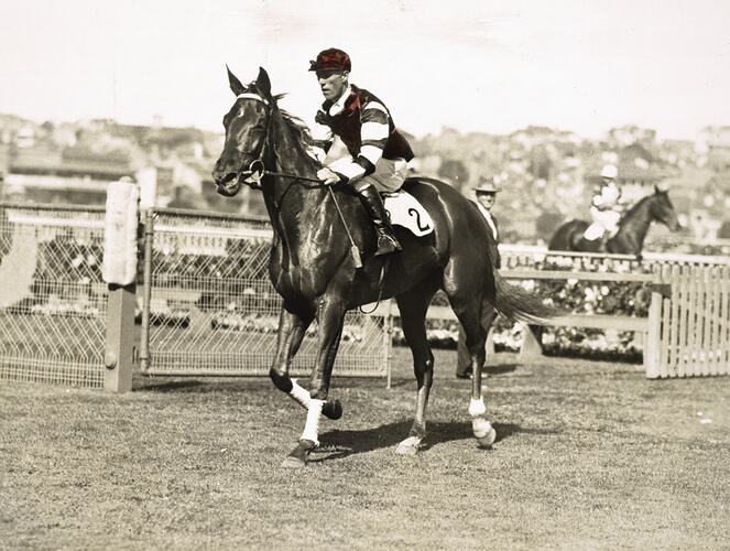 Six photographs in a frame of scenes at the 1929 A.J.C. Derby at Randwick. Photographs include Phar Lap. It was retained by the Telford family, and was amongst a number of items donated to the museum by them in the 1990s.