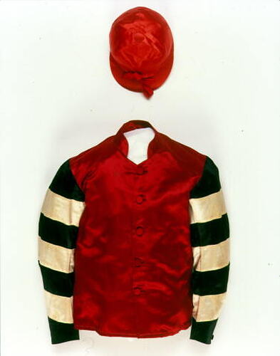 The original colours were also used on silks worn by jockeys riding subsequent horses he trained and owned. This set was retained by the Telford family, and was amongst a number of items donated to the museum by them in the 1990s.