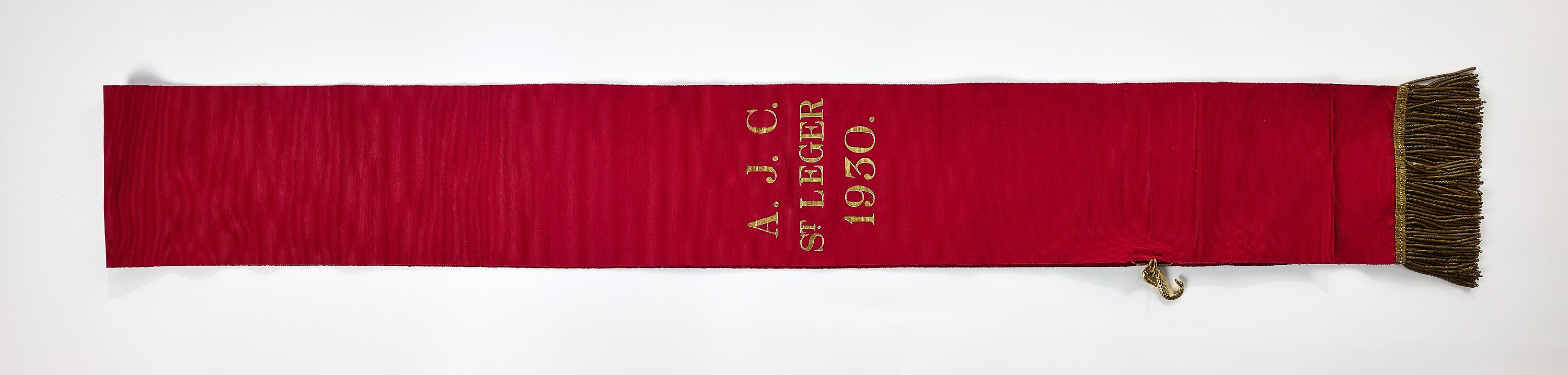 This sash was presented to champion race horse Phar Lap after winning the AJC St. Leger Stakes at Randwick Racecourse in Sydney on the 19th April, 1930. It was retained by family of his trainer Harry Telford family, and was amongst a number of items donated to the museum by them in the 1990s.