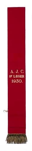 Printed in gold horizontally along front: A.J.C./ ST. LEGER/ 1930