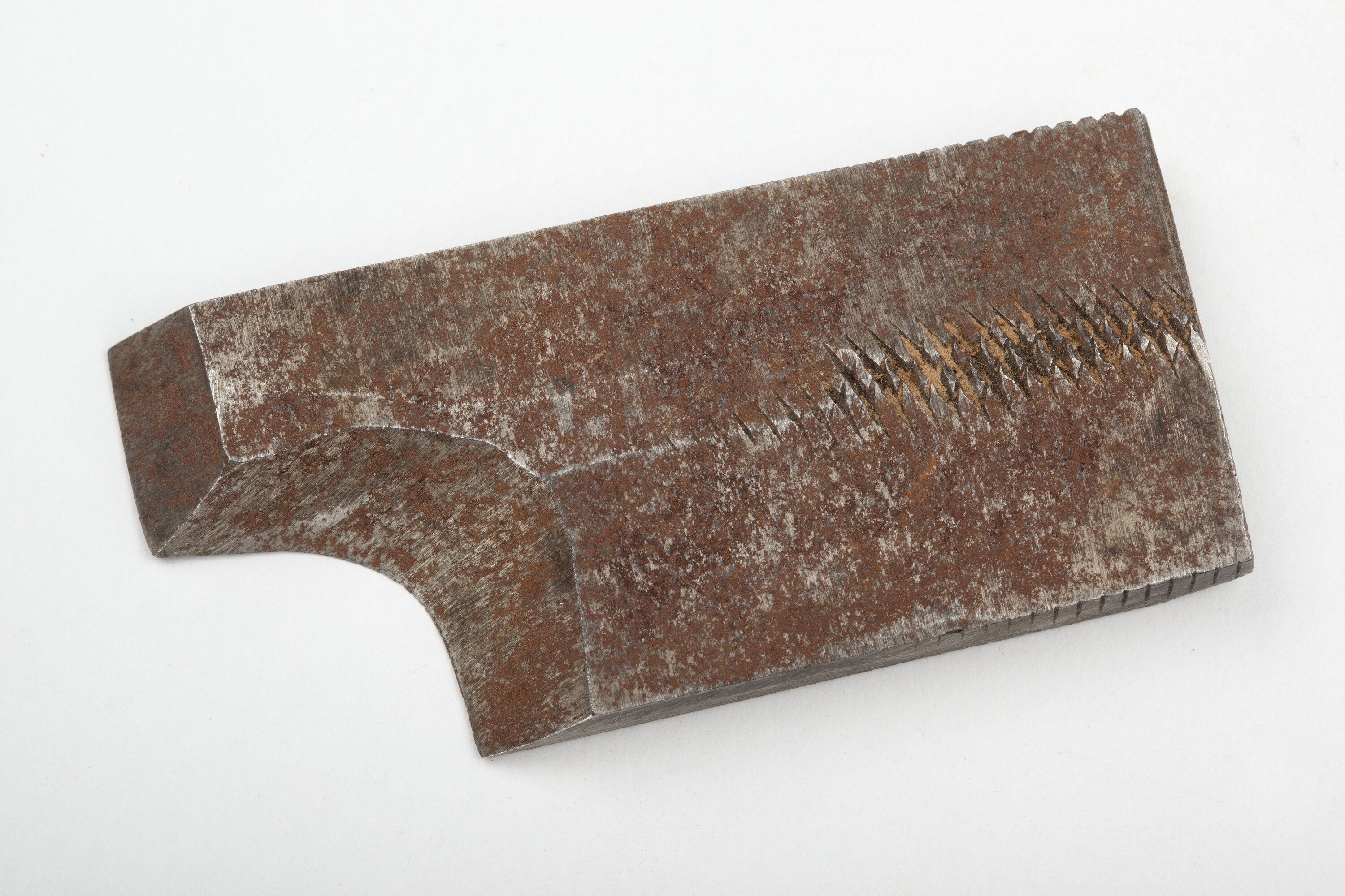 Steel cutter for spindle moulder fashioned from a discarded file. The cutting edge is shaped to cut half rounds.