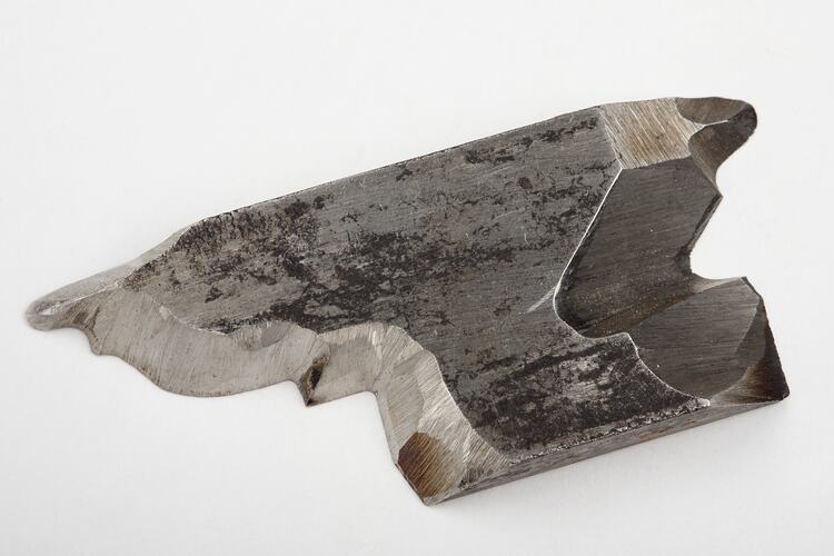 Steel cutter, circa 1970-1990. It was found in the drawer of a cabinet in Area E4 in Adolph Bruhn & Son's Wood Turners Shop, 283 Coventry Street, South Melbourne. The business was established by Adolph Bruhn circa 1893 in Little Collins Street, Melbourne. Upon his death in 1919 it was then operated by Adolph's son Sophus Christopher Bruhn. Upon Sophus's death in 1959 his son Sophus Walter Bruhn took over the business. In 1970 Sophus reduced the scale of the business and relocated to South Melbourne. The business closed upon Sophus's death in January 1990.