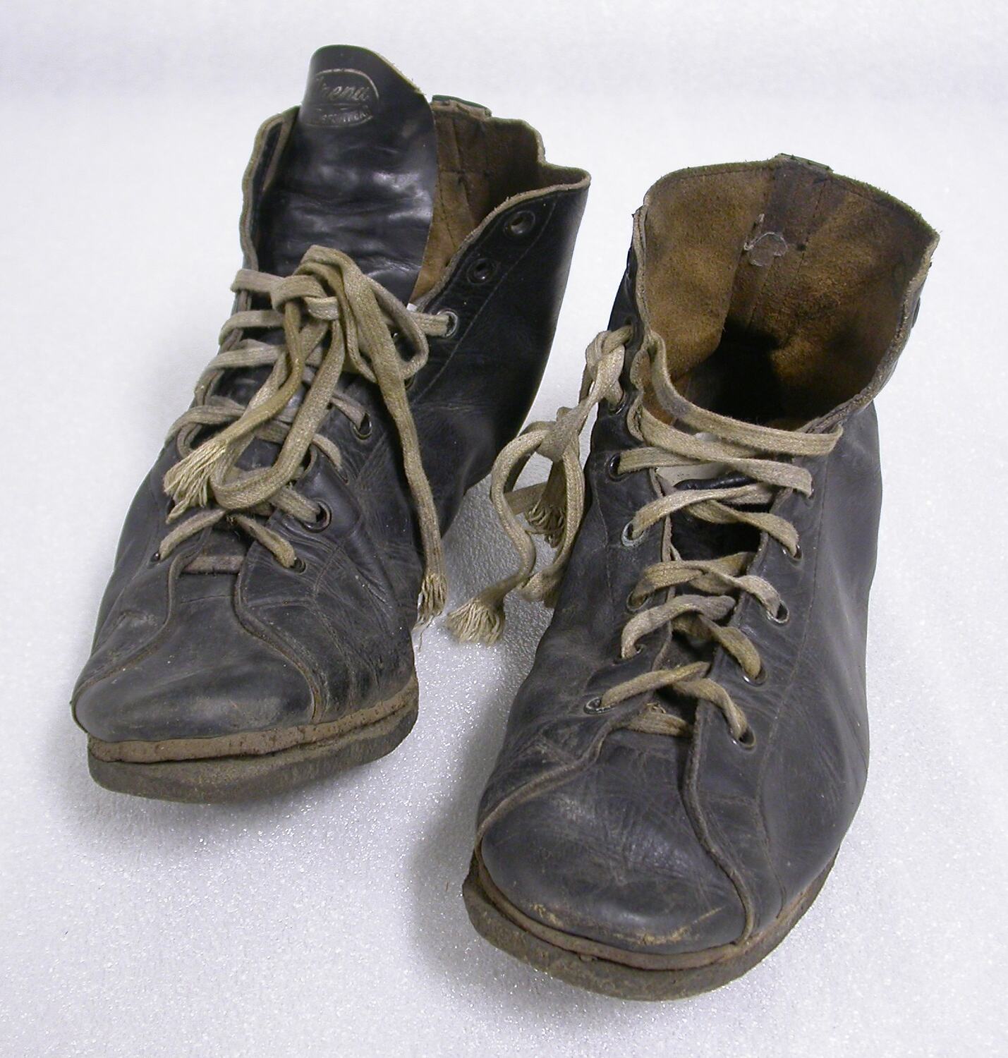 The boots were used by the Harry Johns Boxing Troupe. Harry Johns was a boxing and wrestling entrepreneur who toured the agricultural shows of Australia's eastern states between the 1930s and 1960s.