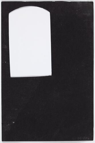 Negative Vignette of a small rectangle, one of a set belonging to Vincenzo Candela, an Italian migrant who came to Australia in 1920 with his wife Emanuela and son Angelo. Used in his photographic business in his hometown of Viggiano, Italy, where he specialised in portraiture, landscapes and village life. Vincenzo continued to use his photographic equipment in Australia, more as a hobby than a trade, taking photos of family members and friends in his home, with impromptu backdrops such as a rug or a sheet.