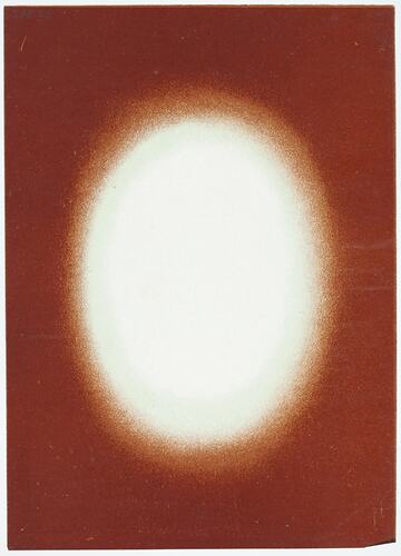Negative Vignette of an oval halo, one of a set belonging to Vincenzo Candela, an Italian migrant who came to Australia in 1920 with his wife Emanuela and son Angelo. Used in his photographic business in his hometown of Viggiano, Italy, where he specialised in portraiture, landscapes and village life. Vincenzo continued to use his photographic equipment in Australia, more as a hobby than a trade, taking photos of family members and friends in his home, with impromptu backdrops such as a rug or a sheet.