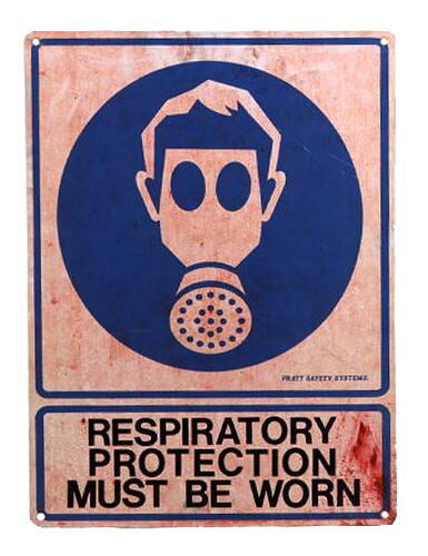 Respiratory protection sign made circa 1961-1980 and used at P.M.A. (Pigment Manufacturers of Australia) Laverton, Victoria, Australia, circa 1961-1990.