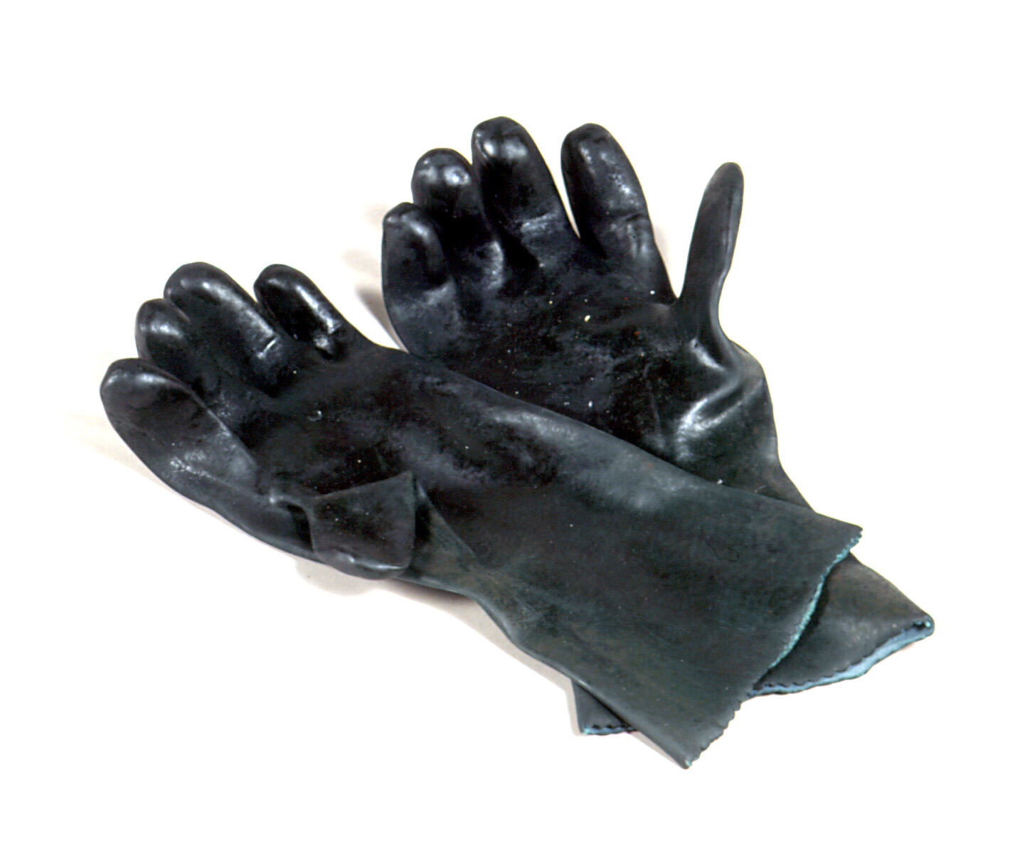 Pair of dark green rubber gloves made by MSA. Used in Laverton, Melbourne, between 1961 and 1990, at Pigment Manufacturers of Australia.