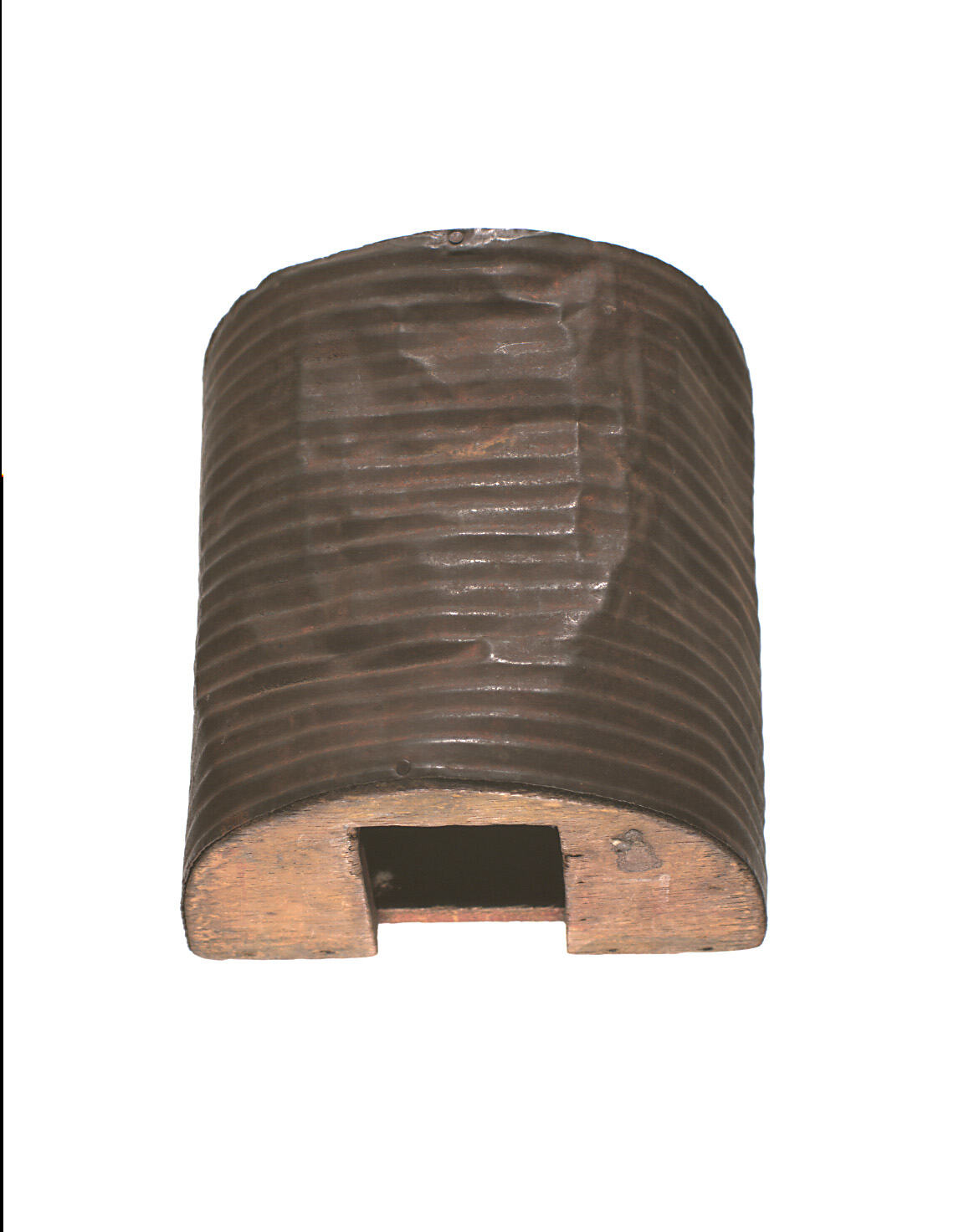 Model Nissen hut of timber and tin, semi-circular, made circa 1940-1945. Made in England, it may have been brought to Australia by the donor and his family when they emigrated after World War II. The hut was acquired with SH 90.704 (toy castle). It is assumed that the dates of manufacture for the two items are the same, as this model is reminiscent of military buildings in war-time.