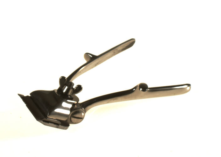 Neck clippers purchased in Melbourne by Ernesto Angerame around 1949 for his barber shop at 330 Lygon Street, Carlton. Some of his tools and equipment were purchased from other Italian barbers closing down their businesses.