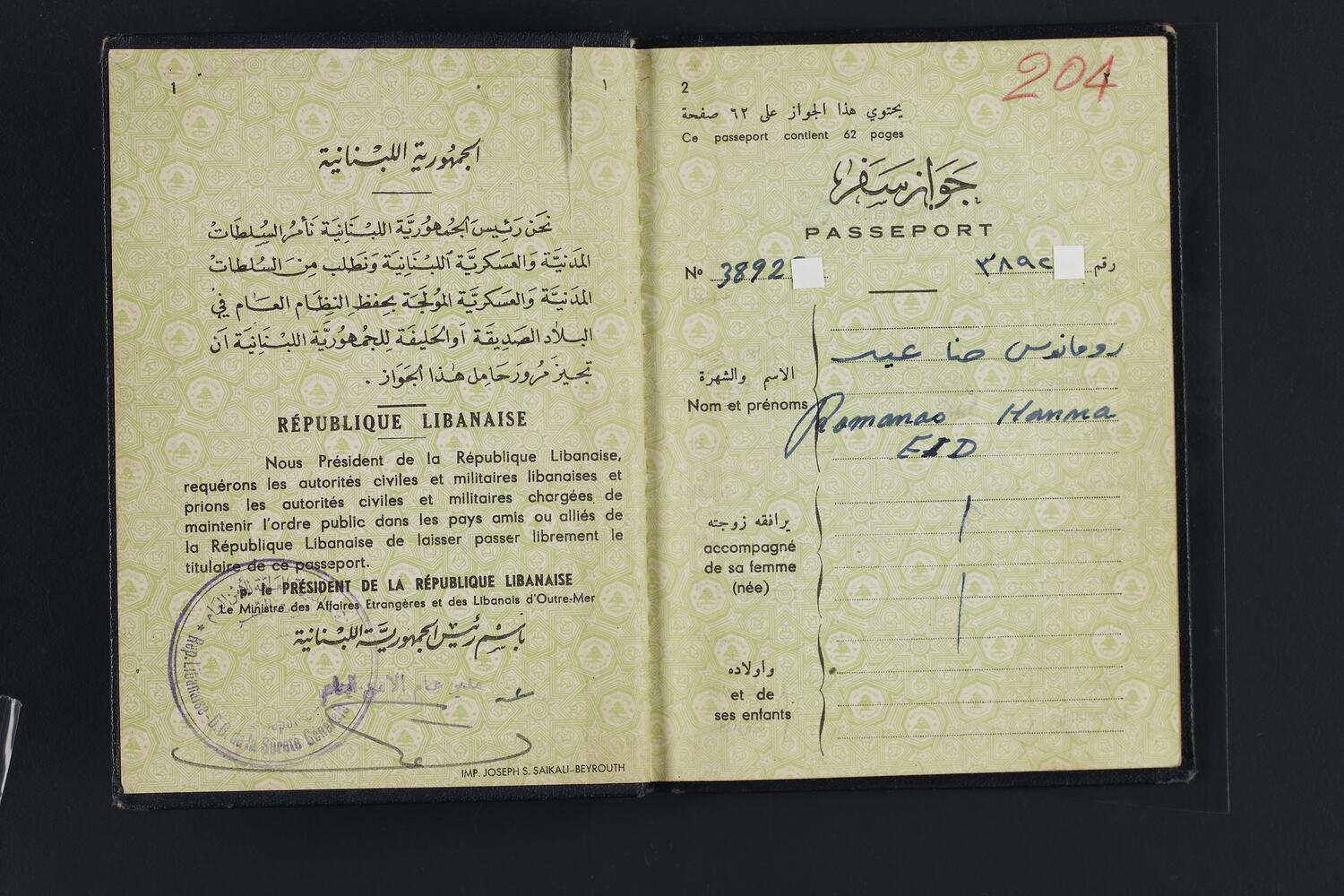 Lebanese passport including identity photograph issued in 1966, belonging to Romanos Eid and brought with him when he migrated to Australia.