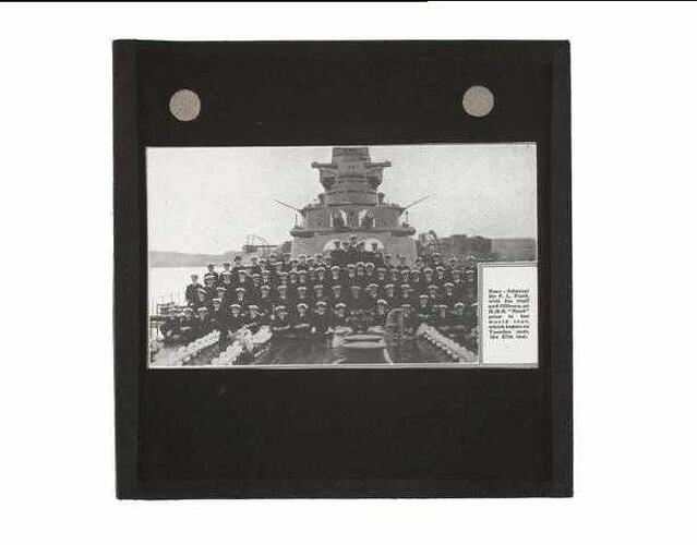 Part of a collection of magic lantern slides relating to British naval history originating from the St John's Home for Boys. These slides were produced in Melbourne after the First World War with images from books and other sources. They are believed to have been used to illustrate lectures to the children in St John's Homes. Several of the slides are marked with the name 'Boreham'. This may indicate a link to Reverend Frank William Boreham (1871-1959), a noted Baptist writer and preacher who used lantern slides to illustrate talks in Melbourne and Tasmania however St John's was an Anglican institution.