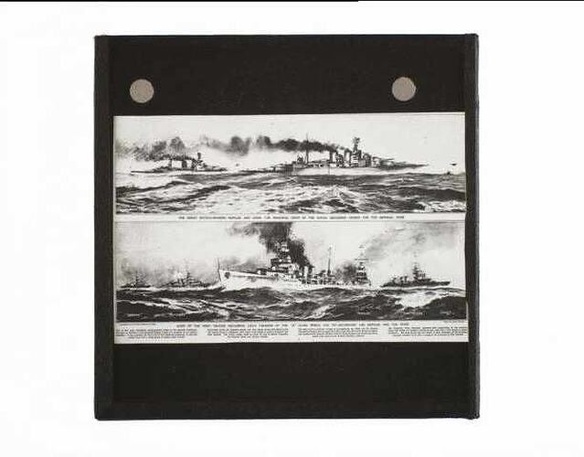Part of a collection of magic lantern slides relating to British naval history originating from the St John's Home for Boys. These slides were produced in Melbourne after the First World War with images from books and other sources. They are believed to have been used to illustrate lectures to the children in St John's Homes. Several of the slides are marked with the name 'Boreham'. This may indicate a link to Reverend Frank William Boreham (1871-1959), a noted Baptist writer and preacher who used lantern slides to illustrate talks in Melbourne and Tasmania however St John's was an Anglican institution.