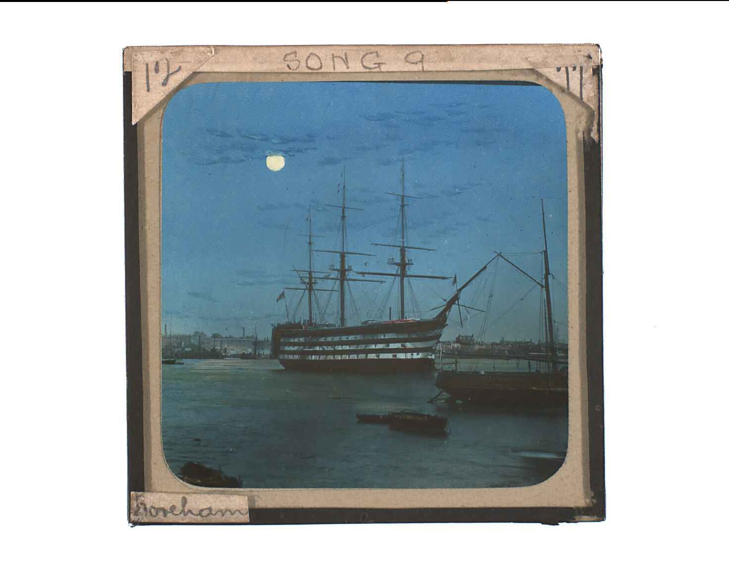 Part of a collection of magic lantern slides relating to British naval history originating from the St John's Home for Boys. These slides were produced in Melbourne after the First World War with images from books and other sources. They are believed to have been used to illustrate lectures to the children in St John's Homes. Several of the slides are marked with the name 'Boreham'. This may indicate a link to Reverend Frank William Boreham (1871-1959), a noted Baptist writer and preacher who used lantern slides to illustrate talks in Melbourne and Tasmania however St John's was an Anglican institution.