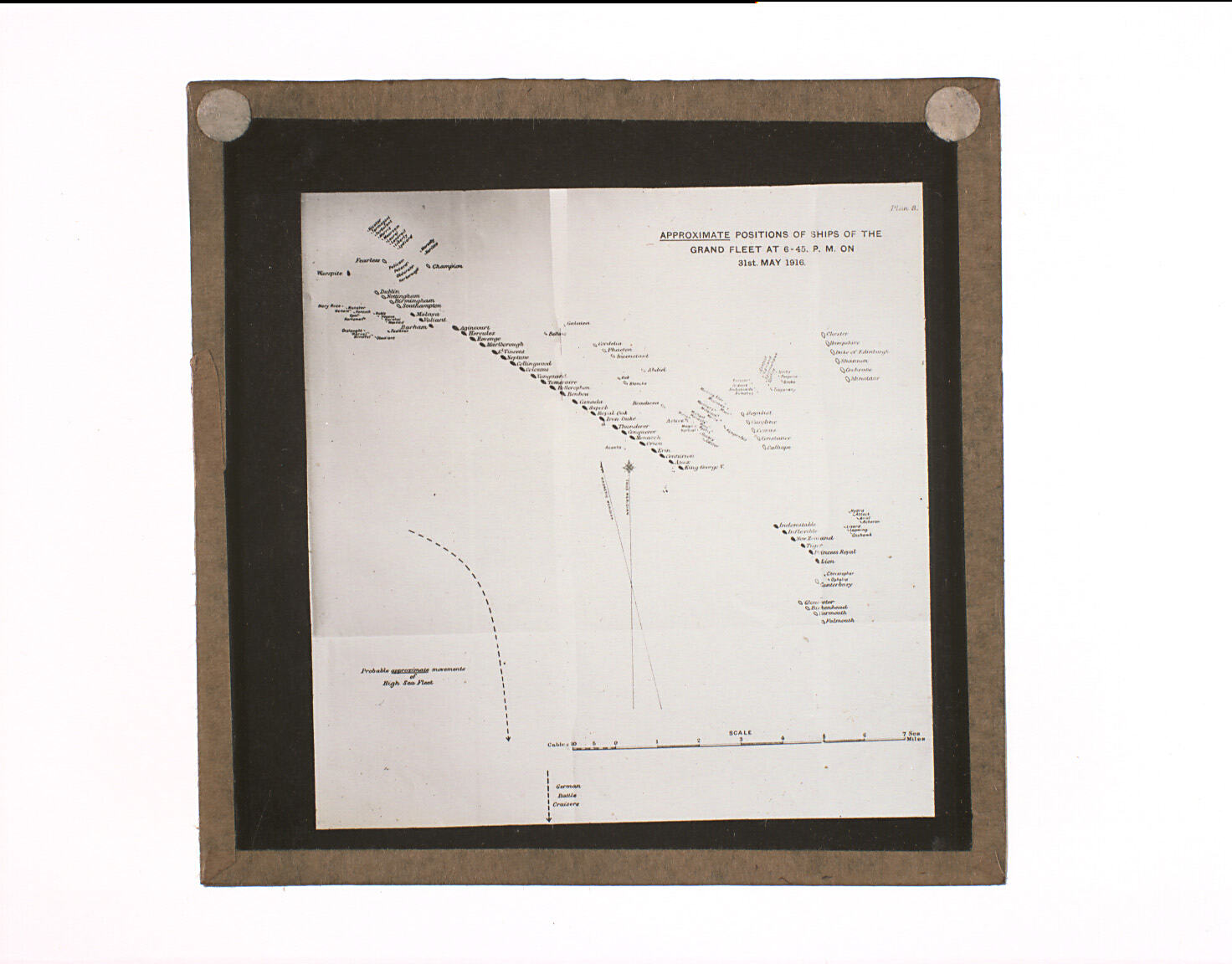 Diagram showing the positions of the ships of the Royal Navy's Grand Fleet at 6.45pm during the Battle of Jutland, 31 May 1916.