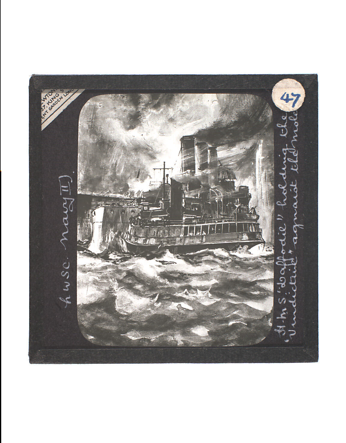 'Newton & Co., 37 King St, Covent Garden, London, 47, (NWSC Navy II), HMS Daffodil holding the Vindictive Against the Mole'