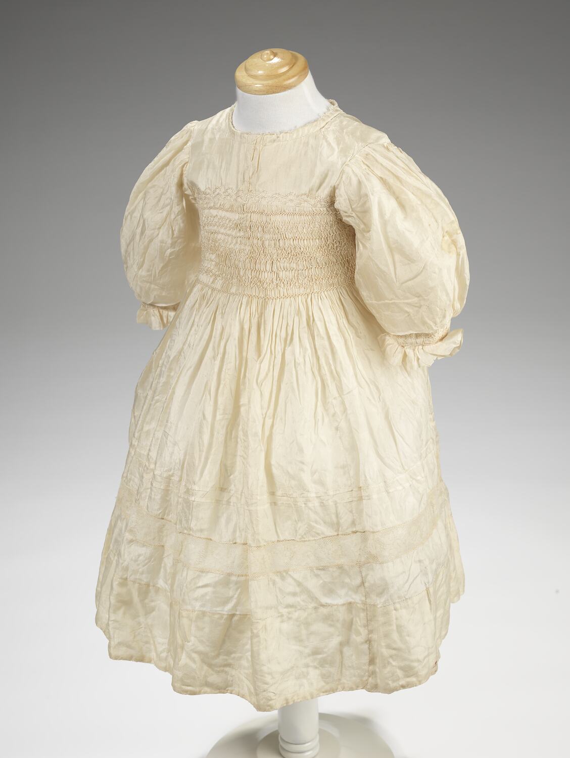 A very similar garment is held in the collection of the Victoria and Albert Museum, described as a 'girl's smock dress of ivory washing silk, the yoke lined with white cotton twill', is dated 1910-1915 (museum number MISC.718-1992). Further research is required to more accurately date the style.