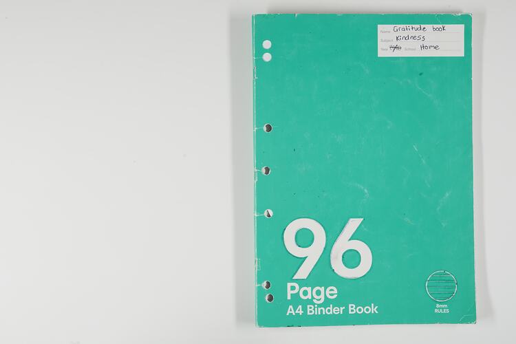 Kofi Aden's A4 Gratitude Journal was acquired with the support of the Office of Suburban Development for the Museums in My Neighbourhood Project, and now forms part of the Collecting the Curve Collection. It will provide a lasting reminder of the experiences that teenagers and students went through during COVID-19, as well as representing a deeper family story of migration, cultural identity and community volunteerism.