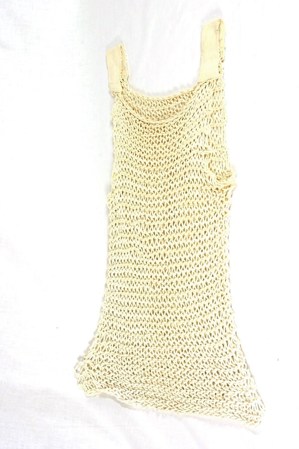 Cotton string singlet used by Australian geologist Ian Macleod on expedition to Antarctica in 1958. McLeod was one of ANARE's most experienced geologists, for expeditions to the Antarctic during the late 1950s and in the 1960s. This singlet is part of Museum Victoria's collection of artefacts from the post-war era of scientific exploration of Antarctica.