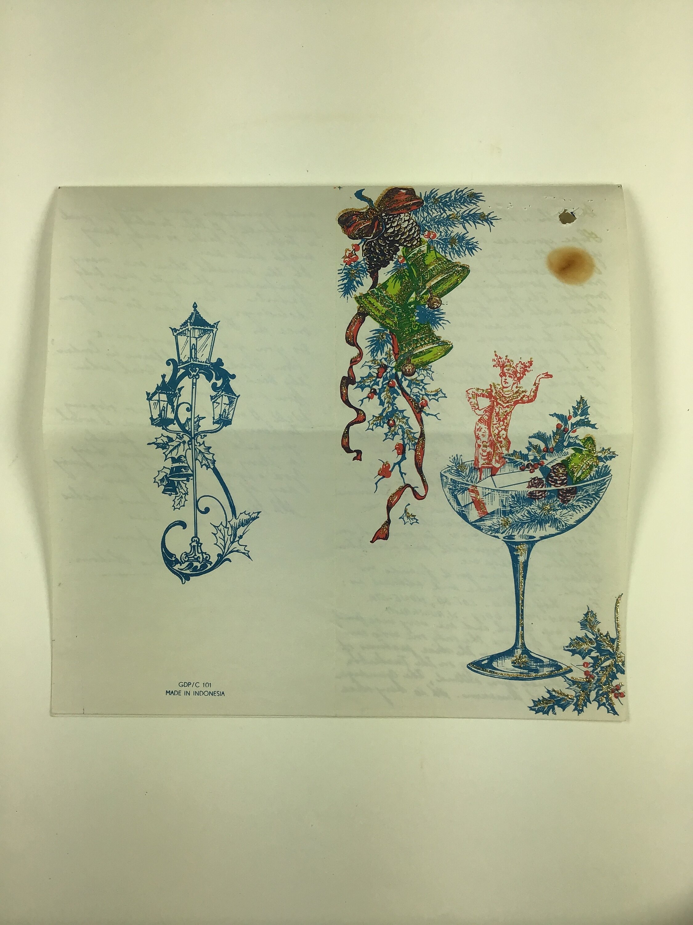 Letter from Hans Hukom in Jakarta, Indonesia to Richard and Edith Winnett in Gundagai, New South Wales, dated 19 December, 1972. It includes Christmas decorations and messages. Hans apologises for the long delay in writing due to business at work (it appears he is still at the Greek Consulate). He states 'there is still no good news from Australia' and 'I hope that you will not forget me in Indonesia.'