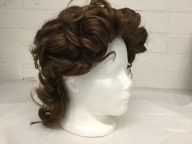 Wig, brand name 'La Rocca' owned and worn by Frances Newell as part of a disguise to avoid police detection during her Vietnam draft resistance activities, about 1969-1970.