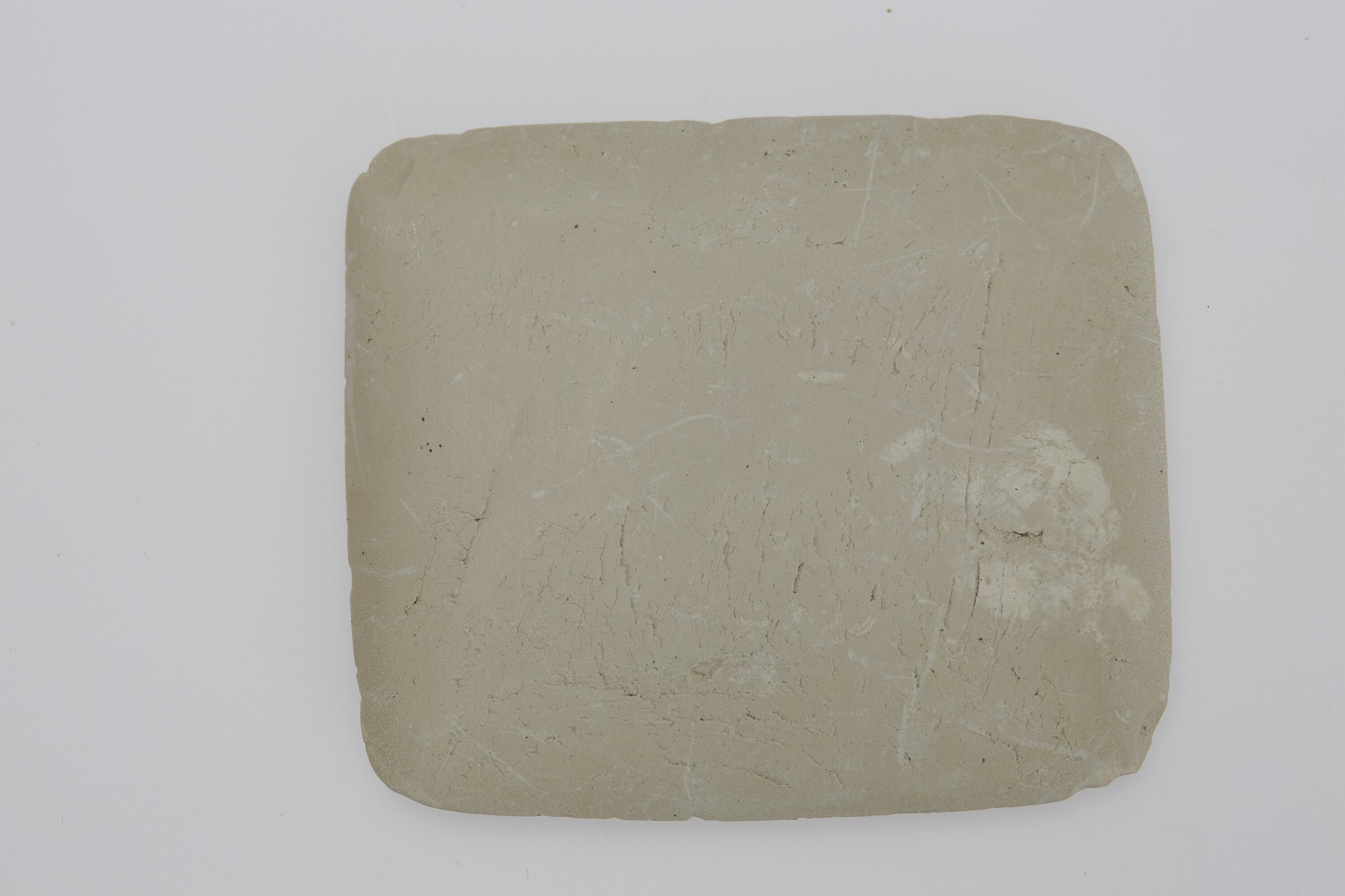 Piece of square tailors chalk originally tucked inside a small box containing 'Leek Make' brand mending silks, itself found amongst the contents of one of a number of sewing boxes owned and used by Mirka Mora in her art studio in Tanner Street Richmond from the year 2000. Mirka located there after having lived in a number of residences and studios in Melbourne CBD, Toorak, and St Kilda.