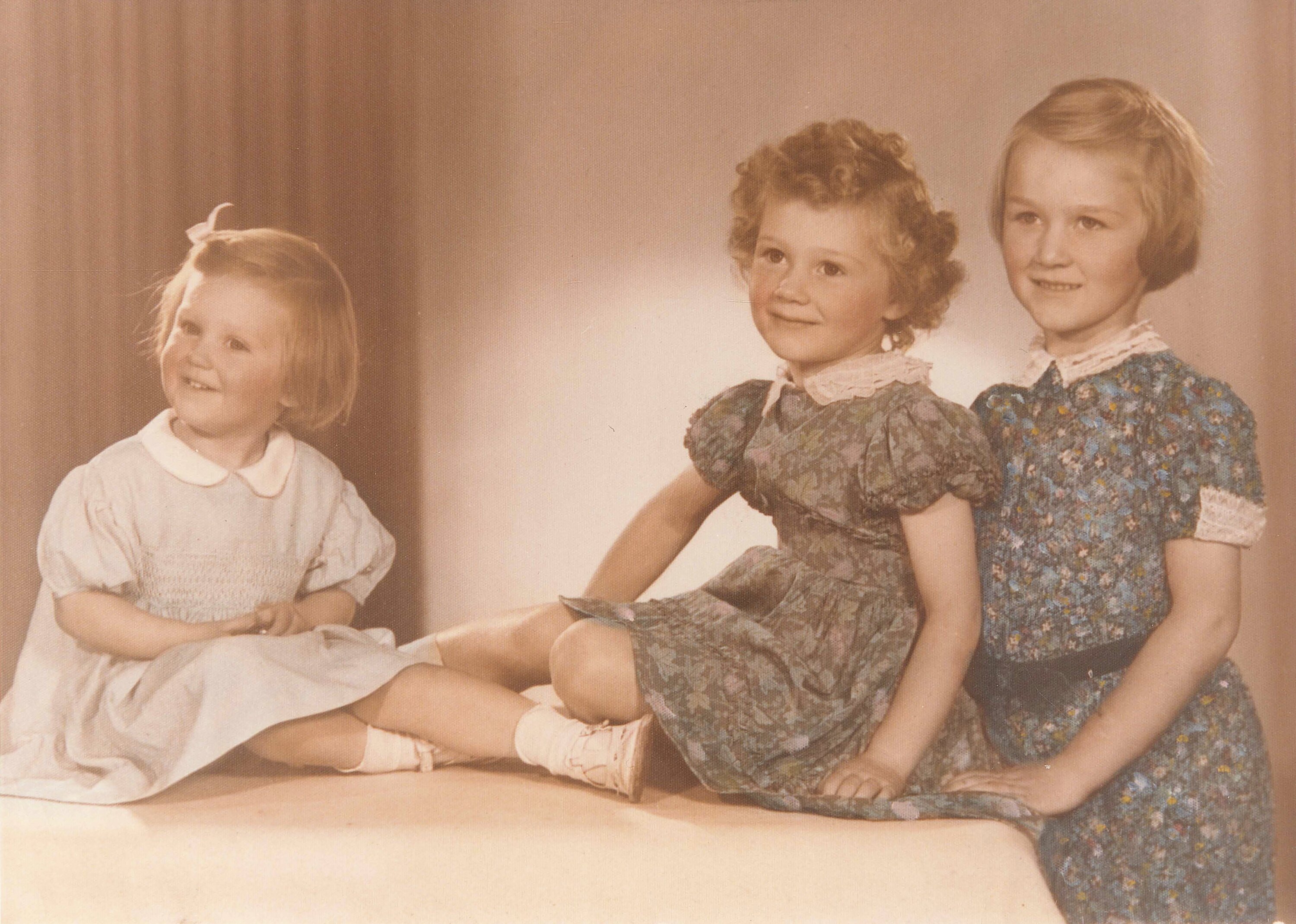 Digital copy of a portrait of Sarah, Frances and Julia Langton-Lockton, taken in 1948.