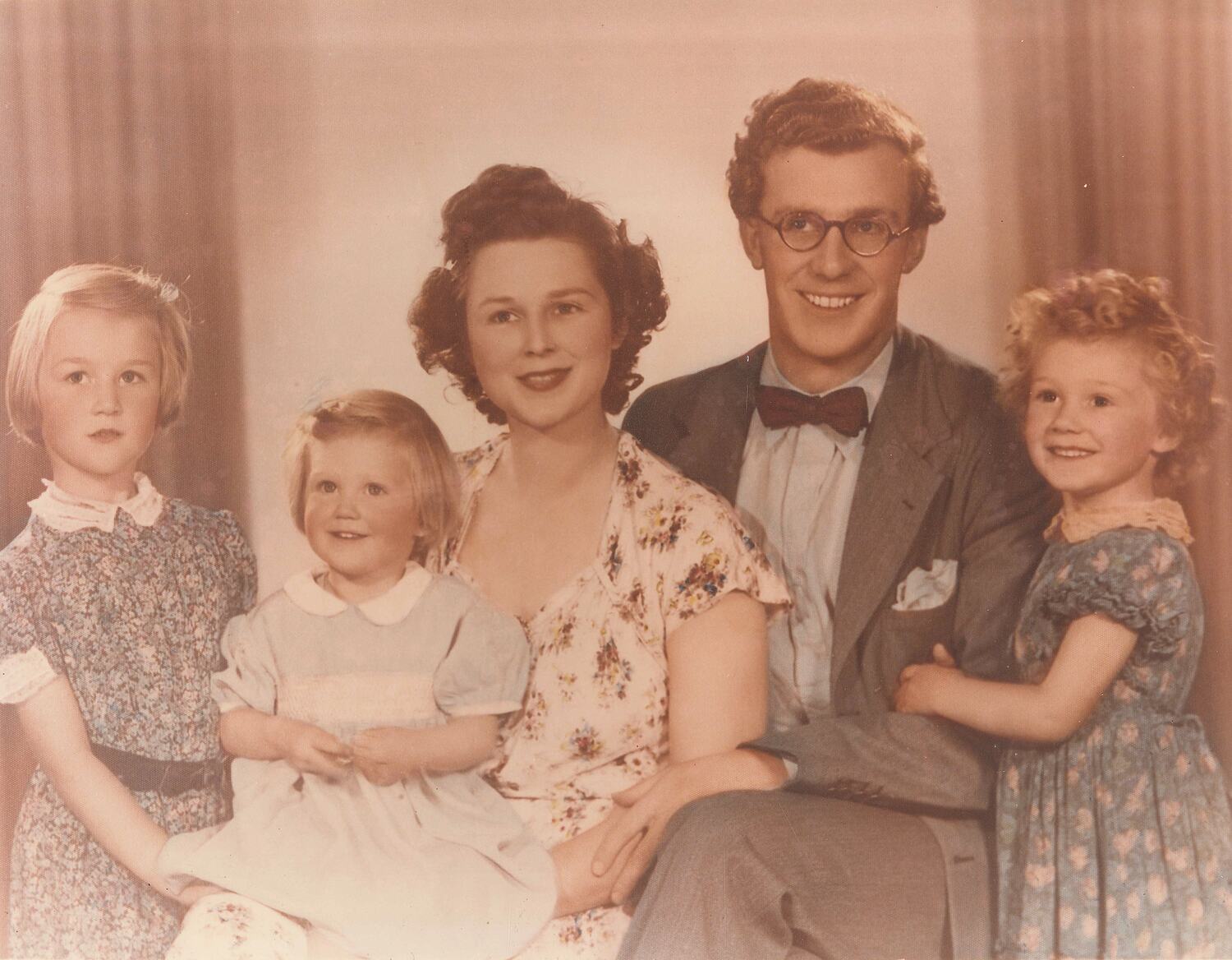 Digital copy of a portrait of Philip and Mary Langton-Lockton with their daughters Sarah, Frances and Julia, taken in later 1948.