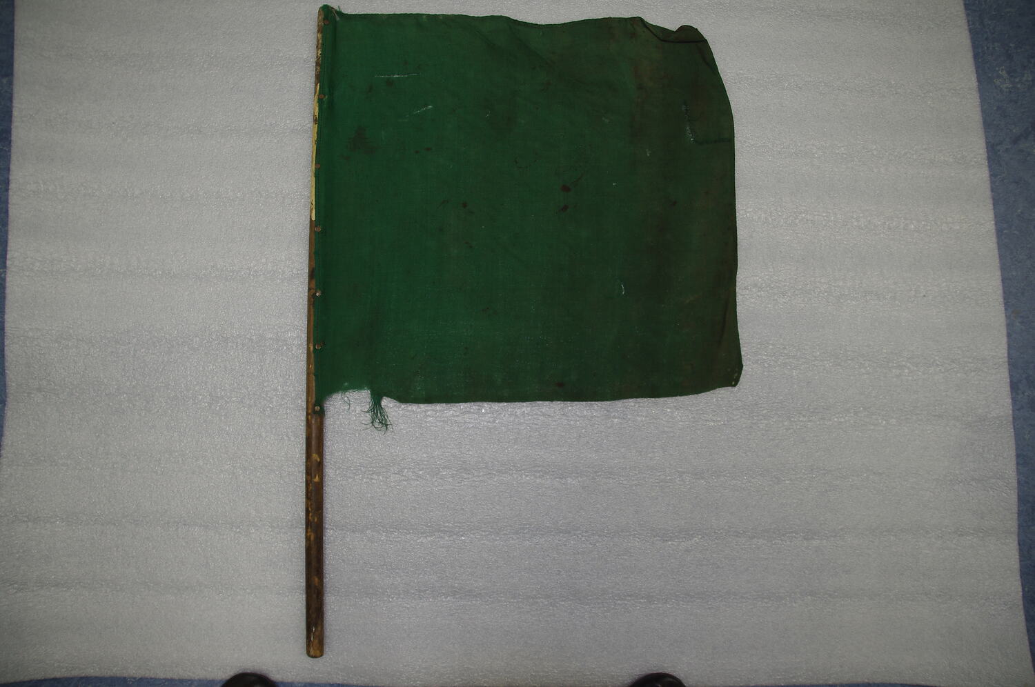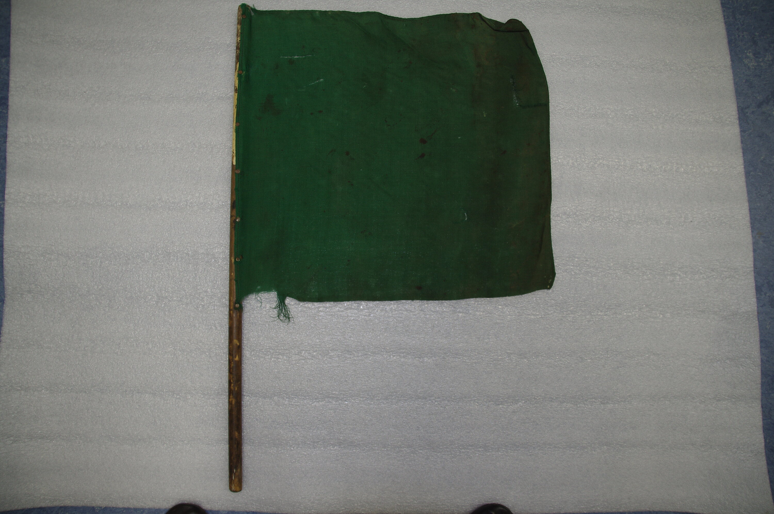 Green traffic control flag. Used at Newmarket Saleyards up to the building of the bridge (over-pass) in 1964 which linked the rail trucks directly across to Newmarket.