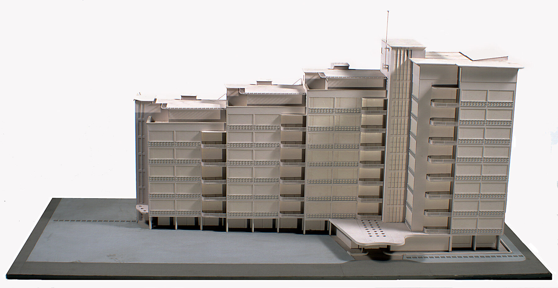 Model of Stanhill Flats, Queens Road, Albert Park, Victoria. Designed by Frederick Romberg and built between 1945-1950. Robin Boyd notes in "Australia's Home" that the Stanhill Flats were completed in 1950 (p 274).