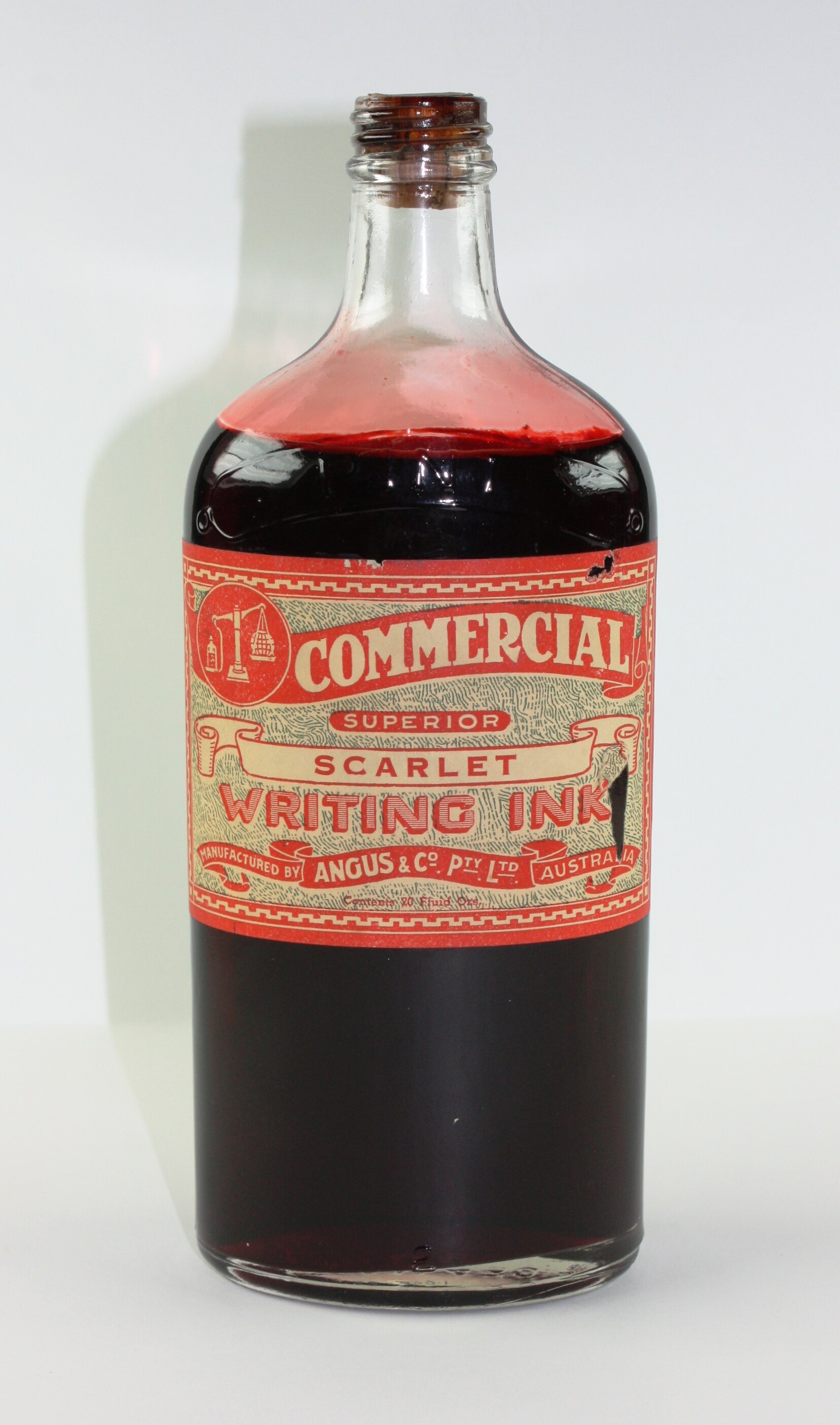 Imperia l / Pint / AISM 430 on base. Commercia l/ Superior / scarlet / writing ink / manufactured by Angus & Co. Pty. Ltd. Australia / contents 20 fluid ozs.