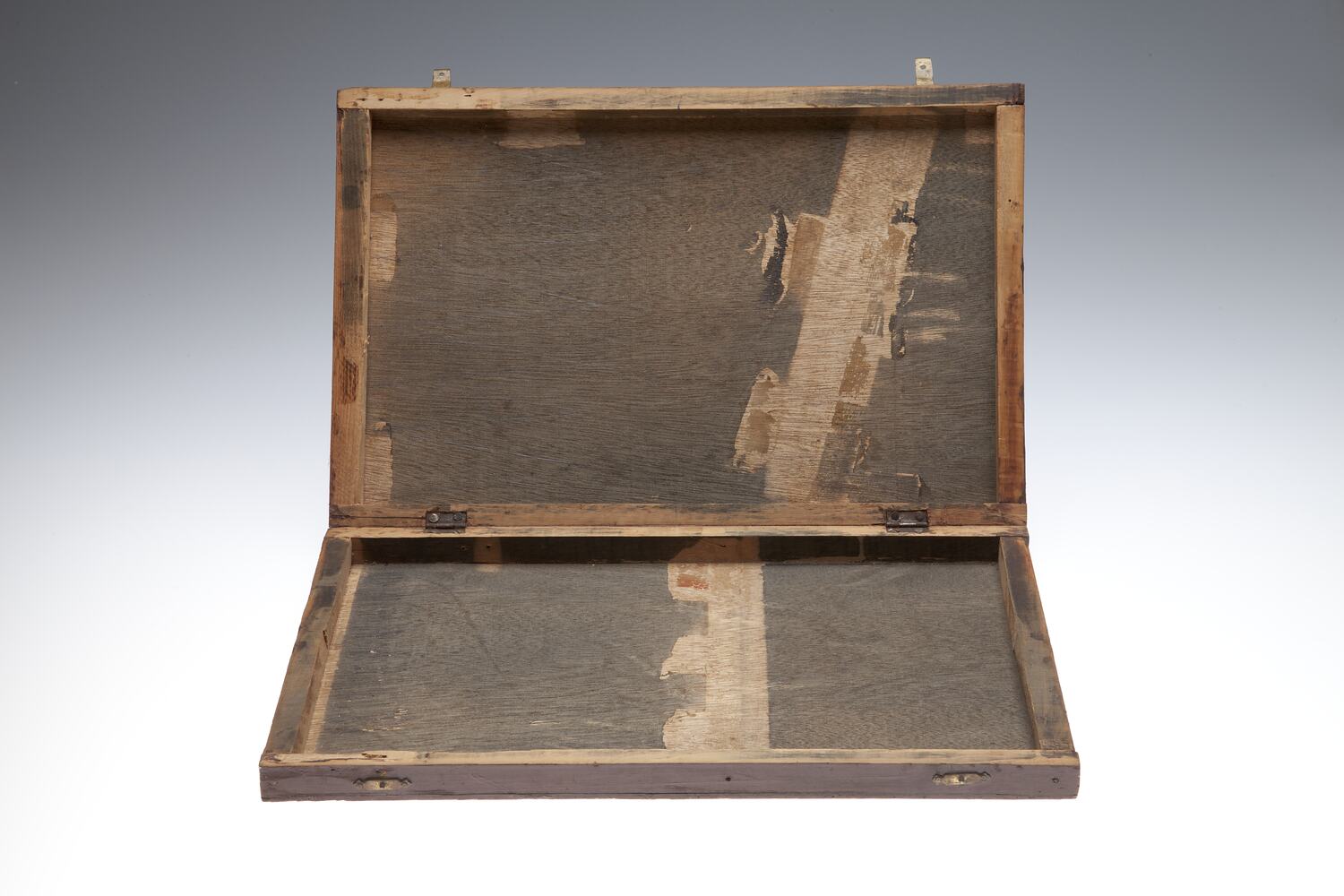 Wooden box used by Nicolae and Barbara Condurateanu to store special documents. Nicolae Condurateanu was a Romanian who was placed in a POW camp during World War II in Germany. He met his wife Barbara, also a Romanian, when she caught the wrong train and ended up in a German Displaced Persons camp, where Nicolae was Barbara had spent World War II in a Russian POW camp and was meant to have been on a train back to Romania. The couple married in 1948 at the A1 Heetre Camp and immigrated to Australia in 1950, where Nicolae worked in a Tea factory and Barbara at the Four and Twenty Pie factory. They had no family in Australia and had to rely on each other for support eventually purchasing a house and establishing a life in their new country.