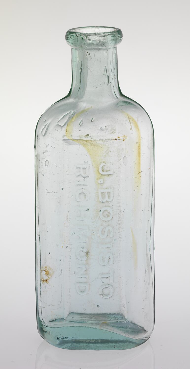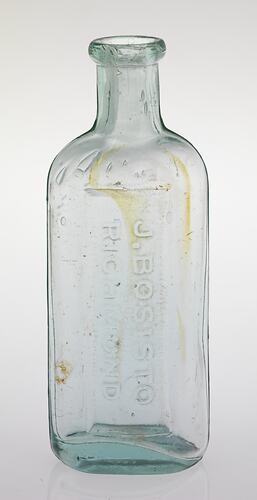 Light green oval jar, upright shape with a short neck. Embossed on side - J. Bosisto, Richmond.