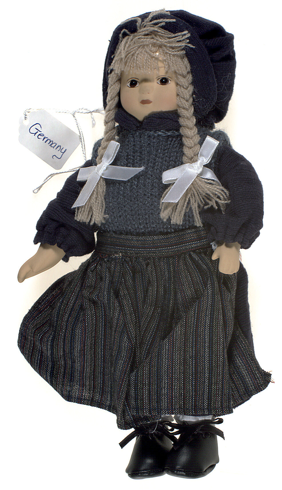 Doll is intended to represent a German woman in traditional folk dress from Northern Germany. -