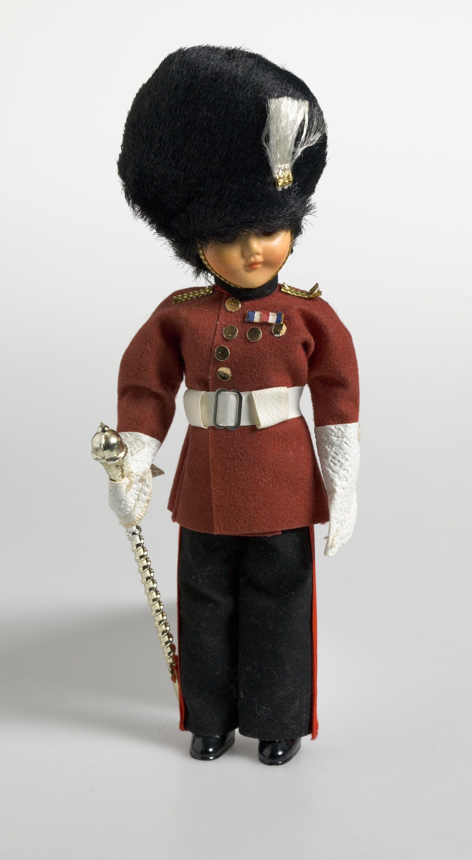 Doll dressed to represent a Grenadier Guard (one of the regiments which make up the Foot Guards of the British Army) -
