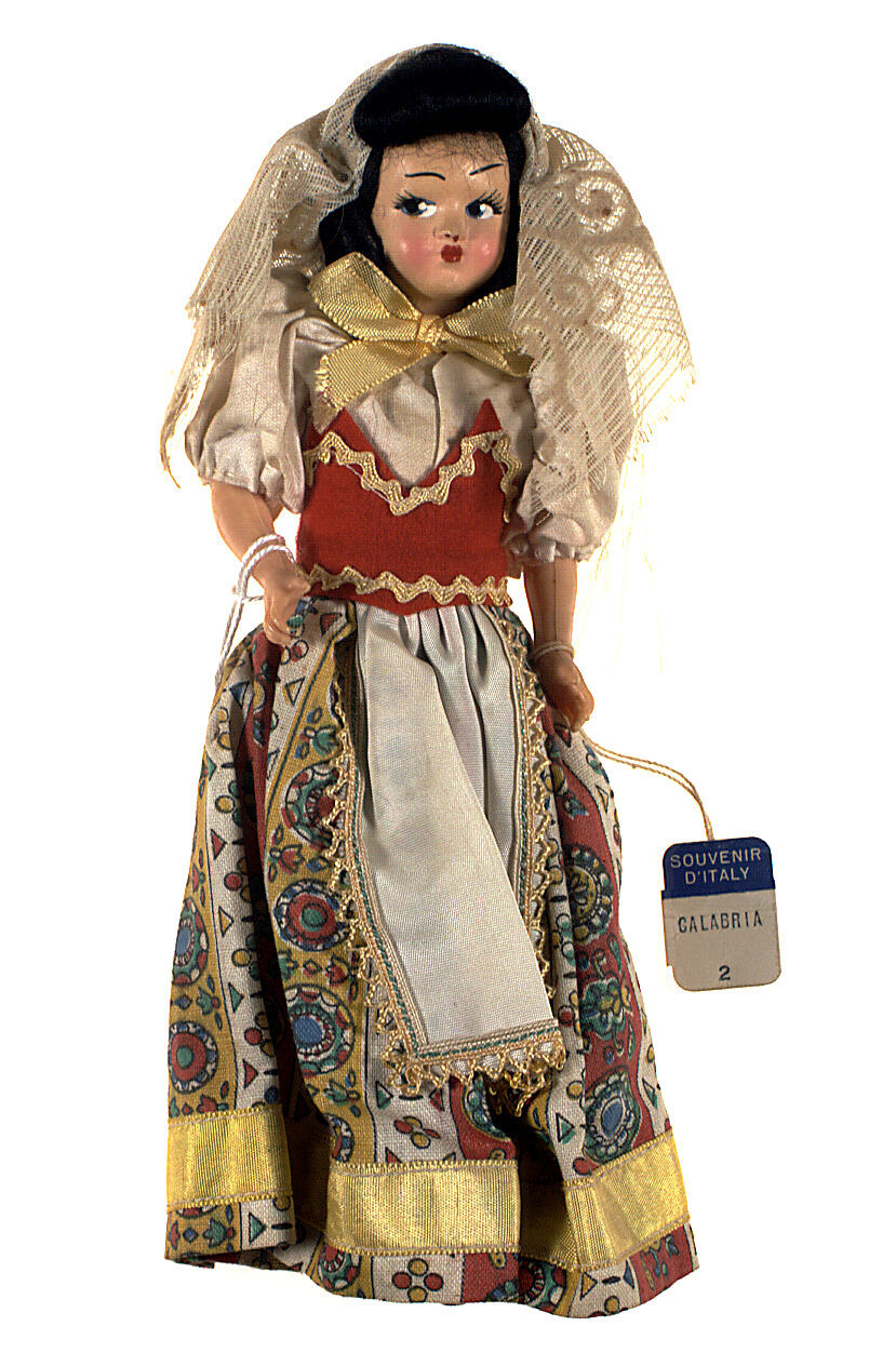 Doll is intended to represent an Italian woman from the region of Calabria, in the South of Italy. -