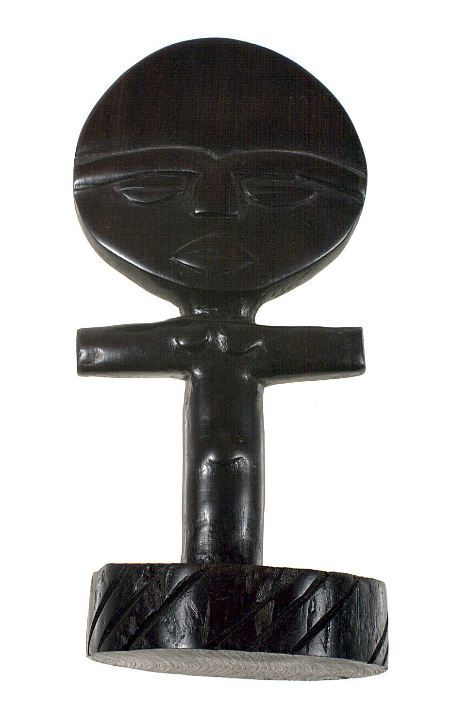 This type of doll known as an Akua'ba, was traditionally part of treatments to encourage infertile women to conceive. The priest consecrates both the figure and the woman, who treats it as if it were her own child until she gives birth, dressing it, holding it etc. Successful dolls may be given back to the priest for display on his shrine or kept by the woman, some women even keep their akua'ba if they do not conceive. The dolls usually are female, with a static pose, disc-shaped enlarged head, black stained finish, and simple incised decoration.