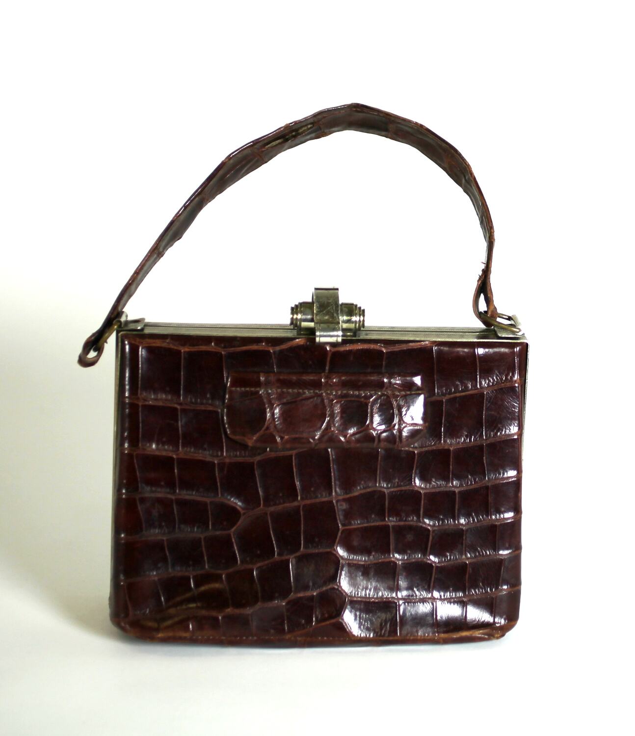 Crocodile skin handbag used around 1940 to 1958 by Mrs Belle Rankin, wife of Senator George Rankin (formerly Major General George Rankin), senator for Victoria 1950-57.