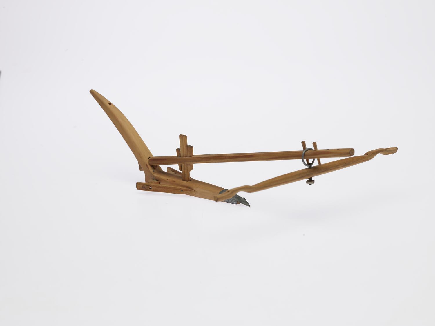 Wooden plough attachment with metal details.