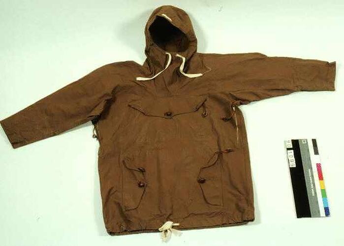Ventile parka designed by ANARE for use in the Antarctic and manufactured by the Commonwealth Government Clothing Factory. It is part of a field suit worn in Antarctica around 1953. They are part of Museum Victoria's collection of artefacts from the post-war era of scientific exploration of Antarctica.